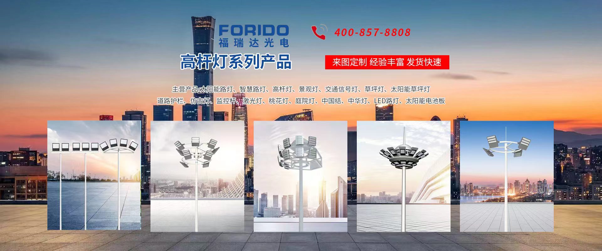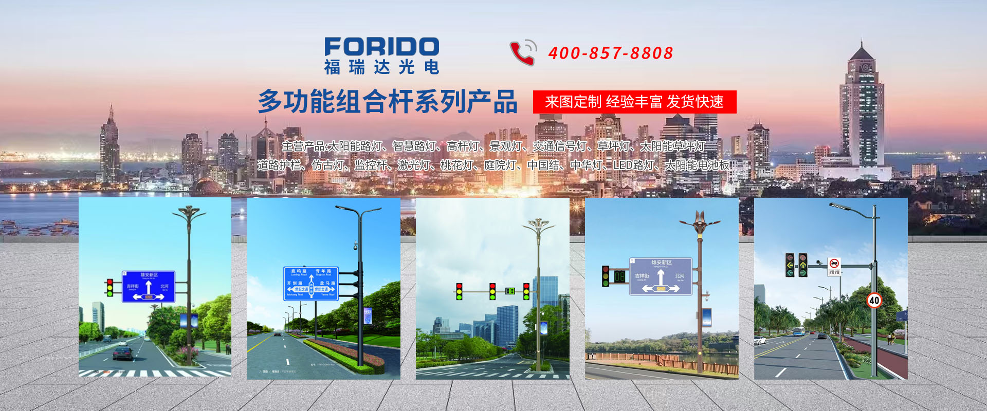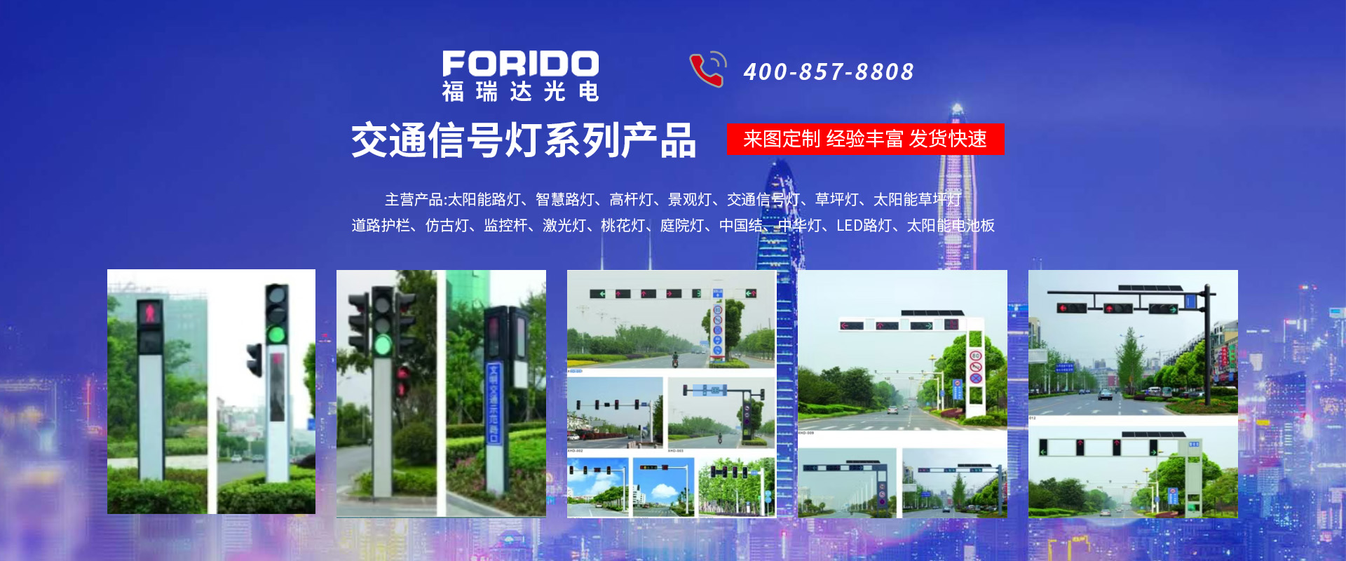 揚(yáng)州福瑞達(dá)光電科技有限公司位于淮左名都?xì)v史文化名城、中國(guó)路燈制造基地?fù)P州市北郊菱塘工業(yè)園,公司占地面積76000平方米,注冊(cè)資金10518萬(wàn)元,擁有高級(jí)技術(shù)嫻熟的員工280多人,擁有大型折彎?rùn)C(jī)、激光切割、數(shù)控注塑機(jī)、壓鑄機(jī)、自動(dòng)埋弧焊、氣焊、彩色粉末靜電噴塑等大型自動(dòng)化設(shè)備,我公司是一家集設(shè)計(jì)、研發(fā)、生產(chǎn)、銷(xiāo)售、施工安裝服務(wù)為一體的戶(hù)外交通照明產(chǎn)品制造商,主要生產(chǎn)智慧路燈、太陽(yáng)能路燈、LED路燈、高桿燈、景觀(guān)燈、交通信號(hào)燈、交通標(biāo)志牌、通信鐵塔、路跨鋼結(jié)構(gòu)、公交站臺(tái)、太陽(yáng)能光伏組件、景點(diǎn)亮化、樓宇亮化工程的設(shè)計(jì)施工等。公司秉承開(kāi)拓創(chuàng)新、銳意進(jìn)取、精誠(chéng)服務(wù)的企業(yè)精神,堅(jiān)持以“誠(chéng)信為本、技術(shù)為先、服務(wù)是金”的合作理念,我們憑借先進(jìn)的制造工藝、優(yōu)質(zhì)的產(chǎn)品質(zhì)量、合理的市場(chǎng)價(jià)格和完善的售后服務(wù)贏(yíng)得了廣闊的市場(chǎng)和客戶(hù)的信賴(lài)?! ∥夜疽淹ㄟ^(guò)ISO9001質(zhì)量體系認(rèn)證、ISO14001環(huán)境管理體認(rèn)證,CQC產(chǎn)品認(rèn)證,中國(guó)節(jié)能產(chǎn)品認(rèn)證,通過(guò)“CCC”強(qiáng)制性產(chǎn)品認(rèn)證,具有市政總承包,照明,交安,設(shè)計(jì)等資質(zhì)···